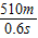 s=v声t声=340m/s×1.5s=510m;