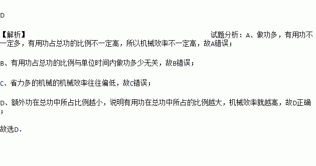 D. 额外功在总功中所占比例越小,机械效率一定越高