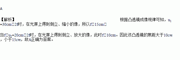 在研究凸透镜成像规律时作了如下记录:当物距u1=30cm时,在光屏上得到倒立、缩小的像;当物距u2=20cm时,在光屏上得到倒立、放大的像.下列判断该凸透镜的焦距中最精确的是( )