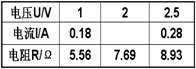 | 电压U/V | 1 | 2 | 2.5 |