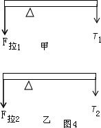 同理,当小成在H点施加竖直向下的拉力为T2时,杠杆EH受力分析如图4中乙图:
