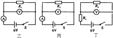 ÏÖÓÐËĸöµçѧԪ¼þ£ºµçÁ÷±íA¡¢µçѹ±íV¡¢×èֵΪ4¦¸µÄµç×èR1ºÍ×èֵΪ6¦¸µÄµç×èR2£®Ä³ÎïÀíÐËȤС×éÒªÉè¼ÆËĸö²»Í¬µÄµç·£¬Èçͼ¼×¡¢ÒÒ¡¢±û¡¢¶¡Ëùʾ£¬ÒªÇóÿ¸öµç·±ØÐëÓõ½ÉÏÊöËĸöÔª¼þÖеÄÈÎÒâÈý¸ö£¬Ã¿¸öµç·ÏûºÄµÄ×ܹ¦ÂÊ·Ö±ðΪP¼×¡¢PÒÒ¡¢P±û¡¢P¶¡£¬ÇÒP¼×£¾PÒÒ£¾P±û£¾P¶¡£®µçÔ´µçѹºãΪ6V£¬¸÷Ôª¼þÎÞ¹ÊÕÏÇҵ緶¼ÄÜÕý³£¹¤×÷£®
