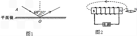 (2)请在图2中标出静止在磁场中的小磁针的N极和磁感线的方向。