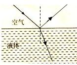 (2)光由空气斜射进入液体中时,折射光线向靠近法线方向偏折,折射角小于入射角.如下图所示: