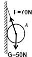 解:球A的重心为球心,过球心作竖直向下、大小为50N的力;过球心作沿绳子方向、大小为70N的力.如图所示: