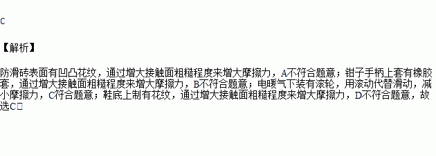 A. 防滑砖表面有凹凸花纹 B. 钳子手柄上套有橡胶套