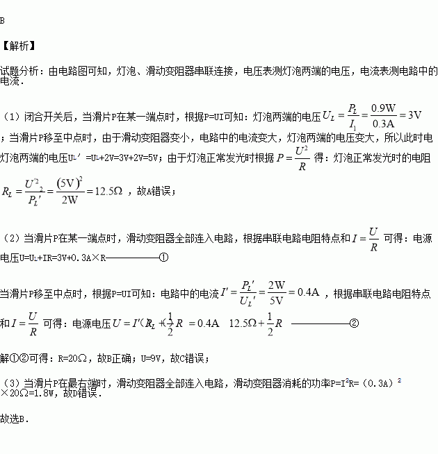 Ϊ0.9W£»µ±»¬Æ¬PÒÆÖÁÖеãʱ£¬µçѹ±íʾÊý±ä»¯ÁË2V£¬´ËʱСµÆÅÝÇ¡ºÃÕý³£·¢¹â£¬ÇÒÏûºÄµÄ¹¦ÂÊΪ2W£®ÏÂÁÐ˵·¨ÕýÈ·µÄÊÇ