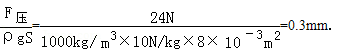 F压=F拉﹣G盖=26N﹣0.2kg×10N/kg=24N,