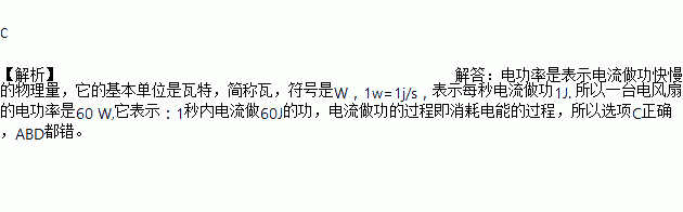一台电风扇的电功率是60 W,它表示( )