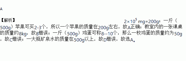学习了质量这个物理量后,我们应能对周围存在的一些物体的质量进行估测,质量为2×105毫克的物体可能是( )