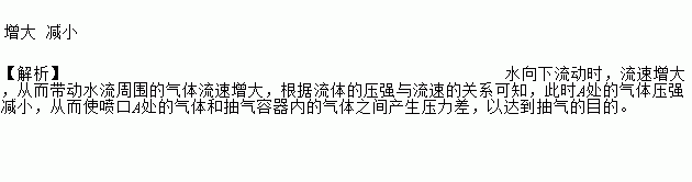 »¯Ñ§ÊµÑéÊÒÀï³£ÓõÄË®Á÷³éÆø»úµÄ½á¹¹ÈçͼËùʾ¡£Ê¹ÓÃʱÈÃ×ÔÀ´Ë®Á÷Èë¾ßÓÐÄÚÖÃÅç¿ÚµÄTÐͲ£Á§¹ÜÄÚ¡£ÓÉÓÚË®Á÷µÄ×÷Óã¬Åç¿ÚA´¦ÆøÁ÷µÄËٶȽ«_________£¨Ñ¡Ìî¡°¼õС¡±¡°Ôö´ó¡±»ò¡°²»±ä¡±£©£¬A´¦ÆøÌåµÄѹǿ½«_________£¨Ñ¡Ìî¡°¼õС¡±¡°Ôö´ó¡±»ò¡°²»±ä¡±£©£¬´Ó¶øÊ¹Åç¿ÚA´¦µÄÆøÌåºÍ³éÆøÈÝÆ÷Ä򵀮øÌåÖ®¼ä²úÉúѹÁ¦²î£¬ÒÔ´ïµ½³éÆøµÄÄ¿µÄ¡£