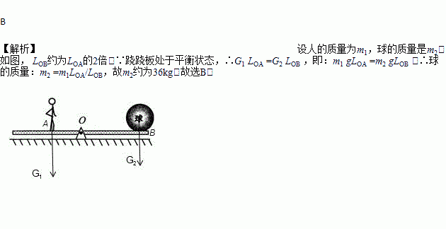 72kg的人站在跷跷板某一位置时,跷跷板处于如图所示的平衡状态.估测球的质量约为( )