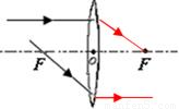 解答:解:平行于主光轴的光线折射光线通过焦点画;过焦点的入射光线折射光线平行于主光轴画,如图所示: