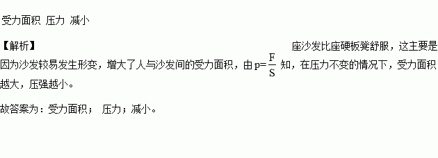 座沙发比座硬板凳舒服,这主要是因为沙发较易发生形变,增大了人与沙发间的__________,在 _________不变的情况下,________压强(选填“增大”、“减小”或“不变”)