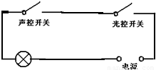 解答:解:晚上,天黑光控开关闭合,有人走动发出声音,声控开关闭合,灯亮,说明两个开关不能独立工作,即两个开关串联,再和灯泡串联.设计电路如下:
