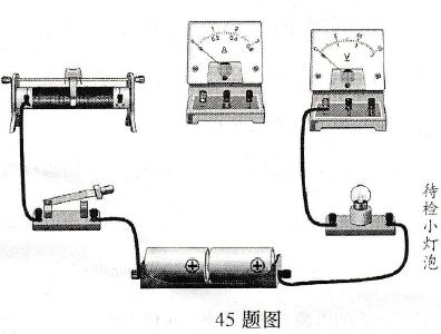 海右中学到产品质量监督部门参加社会实践活动.碰到技术员正在处理一批假冒的“名牌”小灯泡。小明被安排用右图所示的器材检测这些小灯泡的质量是否合格。小明一看.检测器材跟平时在学校做实验用的器材差不多;再看那些小灯泡.做工明显粗糙.尽管标注的有点模糊.但依稀还能辨认出“2.5V 0.3A” 字样。