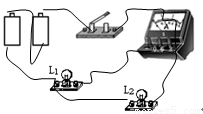 试题分析:根据电路图可知:两灯泡并联,电流表测量流过L1的电流,实物连接如下: