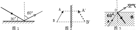 (C)根据光的反射定律和折射规律大致画出图3中入射光线AO的反射光线和折射光线,并用箭头标出光线的方向.
