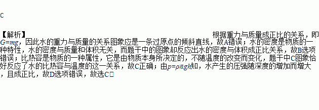 水是人类生存不可缺少的物质,如图中能正确描述水的各物理量之间关系的图象是 ( )