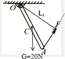 解答:解:棒的重心为C点,过C点沿竖直向下方向画一条带箭头的线段,表示重力的大小和方向;过支点O做力F作用线的垂线,这条垂线段就是力F的力臂,如下图所示: