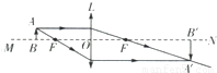 解答:解:在物体AB上从A点开始做一条与主光轴平行的光线,经凸透镜折射后射到A′点,折射光线与主光轴相交的点为焦点F.同样,我们利用光路是可逆的,也可以在A′B′上从A′点开始做一条与主光轴平行的光线,经凸透镜折射后射后到A点,折射光线与主光轴相交的点也是焦点.