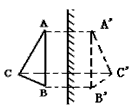 根据平面镜成像特点,在图中画出三角形ABC在镜中的像。