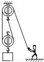 点评:(1)绳子的绕线决定滑轮组的使用效果,一般的两股绳子配一个动滑轮,本题要求站在地面匀速提起物体,应再加一定滑轮.