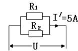 例:如图所示,电源电压恒定,R1和R2阻值不随温度变化,当S1闭合后,S2、S3断开时,电流表示数为3A;当闭合S1、S2,断开S3时,电流表的示数为5A。当闭合S3断开S1、S2时,电路的总电阻与R1的比值是多少?电路消耗的总功率与R1上消耗的功率之比是多少?![]()
