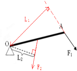 (2)从支点向动力F1作垂线,垂线段即为动力臂;做出阻力臂L2的垂线,方向向下,即为阻力F2,如下图: