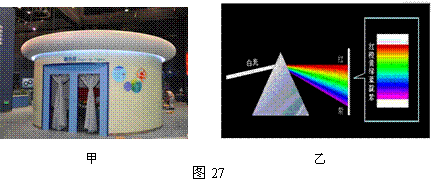 (2)图27乙所示为白光通过三棱镜后发生色散现象,这说明白光是由 组 成的;