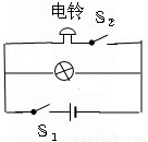 解答:解:由电路图可知,灯泡与电铃并联,开关S1控制整个电路,S2控制电铃,按要求画出电路图即可.如图所示: