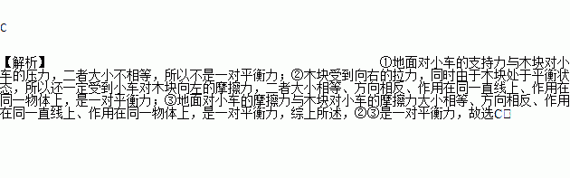 ①地面对小车的支持力与木块对小车的压力