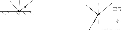 【答案】分析:①根据反射定律:反射光线、入射光线和法线在同一平面内,反射光线、入射光线分居法线两侧,反射角等于入射角完成光路图.