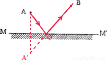 点评:本题利用了平面镜成像特点完成光路.物与像关于镜面对称.本题还可以作出B点的像B′,连接AB′与镜面交于O点,从而确定入射光线和入射点,连接OB,OA画出反射光线和入射光线即可.