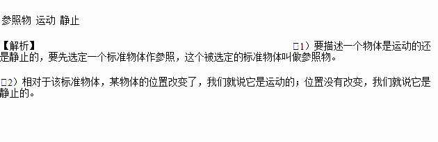 要描述一个物体是运动的还是静止的,要先选定一个标准物体作参照,这个被选定的标准物体叫做______。相对于该标准物体,某物体的位置改变了,我们就说它是_______的;位置没有改变,我们就说它是______的。
