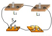 【答案】分析:实物图中,电源、开关、两只灯泡组成串联电路.对各选项逐一分析.