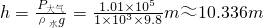 解答:一个标准大气压值为1.01×105Pa,可求出支持的水柱高度为: