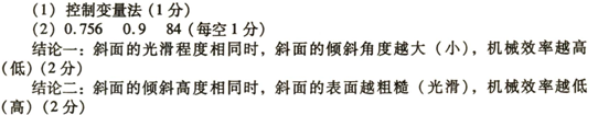 (8分)如图所示,下面是某同学做探究“斜面的机械效率与斜面的粗糙程度、斜面的倾斜程度的关系”实验时,得到如下实验数据.![]()