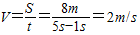 由图中可知:小车运动的路程是5.0m以上3格处,每个小格是1m,所以小车在0到5到的时间内运动的路程是8m,前一秒是没有运动的,所以小车在1s到5s的时间内运动的路程是8m;