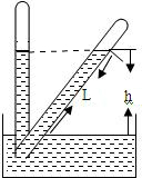 解:如图,当玻璃管倾斜时,由于大气压不变,能支持的水银柱高度不变,所以管中水银柱长度会变大(L>h),管内的水银增多,使水银槽内的水银面下降、h变小,根据p=ρgh可知水银槽底部所受水银的压强减小.