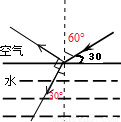 【答案】分析:一束光线由空气射到水面时,既要发生反射,又要发生折射,反射角等于入射角,折射角小于入射角.反射光线与水面的夹角为30°,则入射角和反射角均为60°.再根据折射光线与反射光线垂直,可求出折射光线与水平面的夹角,然后可知折射角.