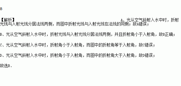 如图是光从空气斜射到水中时的光路图, 正确的是