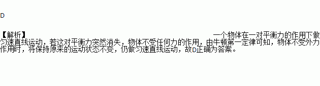 一个物体在一对平衡力的作用下做匀速直线运动,若这对平衡力突然消失,物体不受任何力的作用,物体将