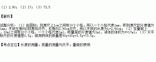 (1)图1中,木块的长度为 cm