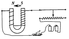 (2)当变阻器滑片向右移动时,蹄形电磁铁的磁性减弱。