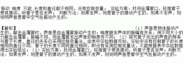 (3)小明发现悬挂的金属管发出声音时在做有规律的摆动,认为金属管发出的声音是由于摆动所产生的。请设计一简单的实验来检验小明的想法,简要写出实验方案和判断方法。