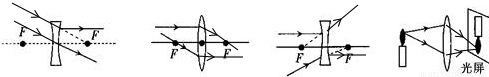 解答:解:(1)平行于主光轴的光线经凹透镜折射后的光线的反向延长线过焦点;射向焦点的光线经凹透镜折射后,将平行于主光轴.