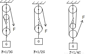 点评:考查滑轮组的组装,在平时的学习中应注意归纳总结规律:绳子自由端位置的确定“奇动偶定”.