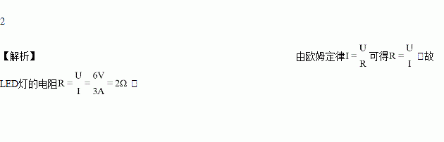 如图所示的LED灯正常工作电压为6 V,电流为3 A,则其电阻为____Ω。