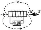 解:小磁针N极向左,则说明该处的磁感线向左,因外部磁感线由N极指向S极,故螺线管右侧为S极;